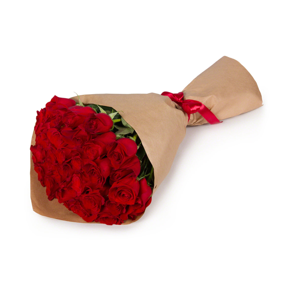Элегантный букет из красных роз в экологичной крафтовой упаковке — это современное проявление искренних чувств.